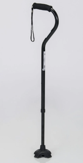 Offset Cane w/ Quad Tip, 250Lb Weight Cap, Black