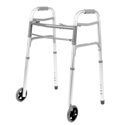 Universal 2 Button Walker with wheels 300 Lb Weight Cap.- 4 per case